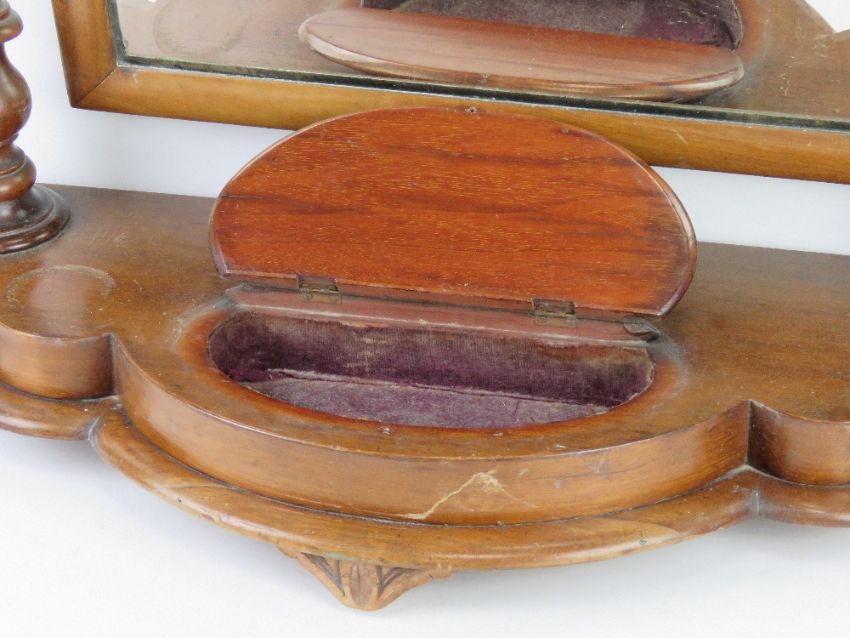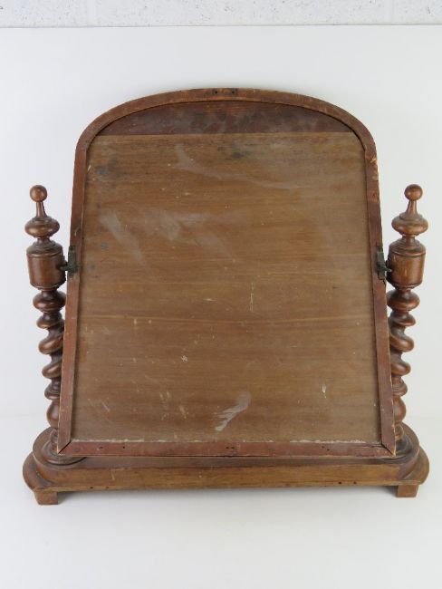 A large mahogany Victorian bedroom mirror raised over barleytwist supports upon the shaped base with integral jewellery recess, 68cm hgih, 68cm wide.