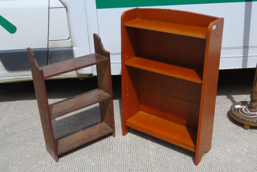 A contemporary floor standing bookcase 62cm wide together with a hanging bookcase 48cm wide and table.