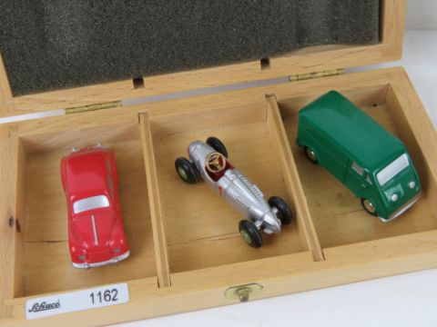 A quantity of scale model vehicles inc a set of four Italian made Audi Land Speed record holding model cars by Brumm, a set of three miniature model vehicles by Schuco and two others.