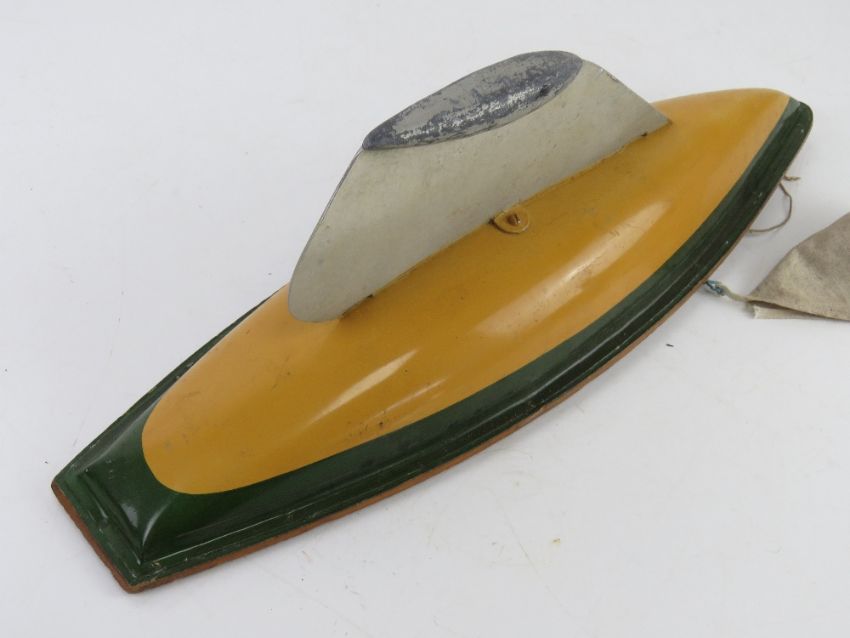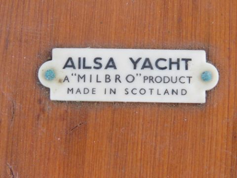 A model pond yacht hull bearing label 'Ailsa Yacht' a Milbro Product made in Scotland approx 47cm in length.