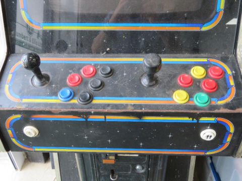 A Leisure 2000 cab, six button per player, retro arcade vintage video games machine, untested, standing 166cm high, approx 74 x 58.5cm.