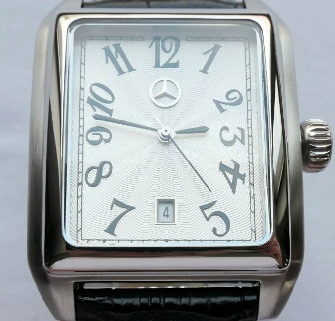 A superb Mercedes Benz Classic gentleman's wrist watch. Very rare model from the early 2000s and new old stock.Arabic numerals upon an engine-turned face with subsidiary date dial.