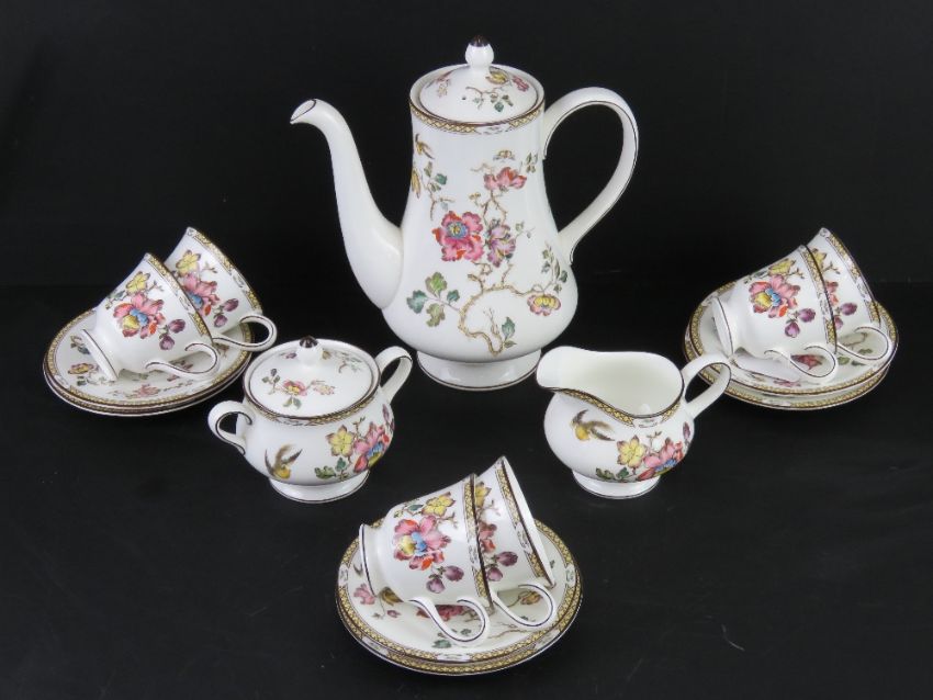 A Wedgwood Swallow pattern coffee pot, cream and sugar with six duos.