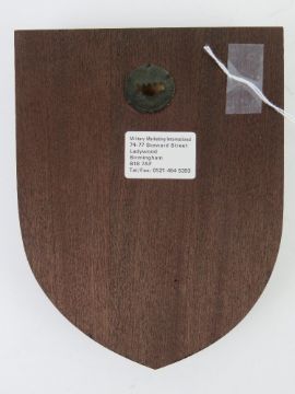 A contemporary mahogany Mess Shield bearing Royal Buckinghamshire Yeomanry Signal Squadron, 18cm high.