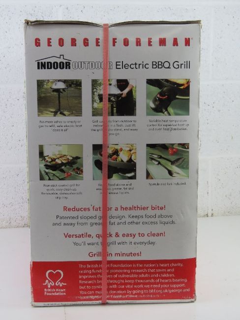A George Foreman Electric BBQ grill, as new in box, unopened.