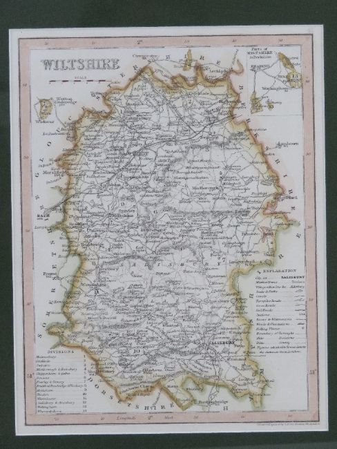 Maps; four maps 'drawn and engraved by J Archer Pentonville London' being Cumberland, WiItshire, Warwickshire and Dorsetshire, each framed and mounted, largest 40 x 34cm overall.