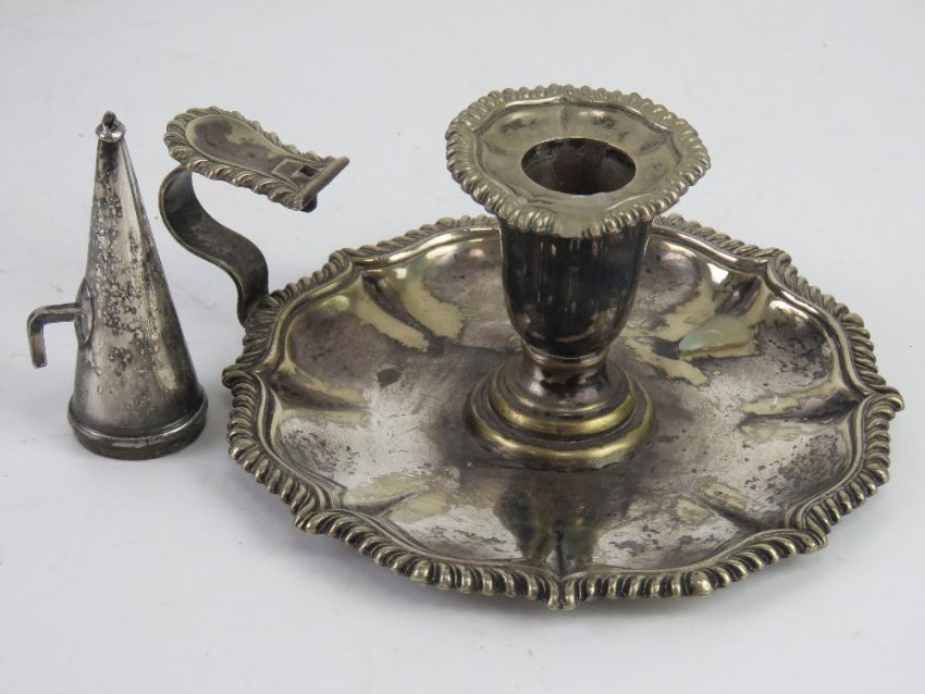 A quantity of silver plated ware including chambersticks, two egg coddlers, a footed lidded scented candle, boxed presentation candle dish, and boxed butter knives.
