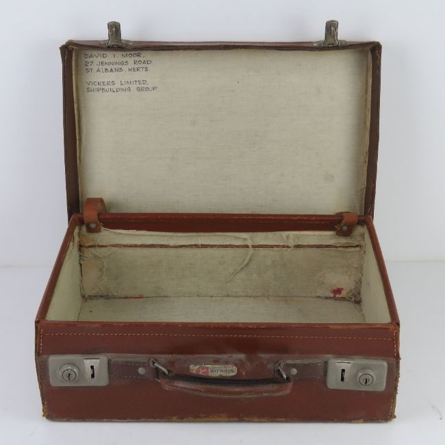 A pair of graduated pigskin leather vintage suitcases, the larger having British Airways Executive Club label upon, largest 50.5cm wide.