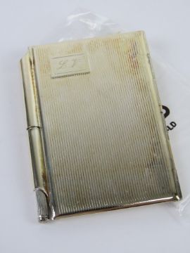 A RISIS orchid tie clip in original packaging, together with a pair of cufflinks and a metal pocket notebook.