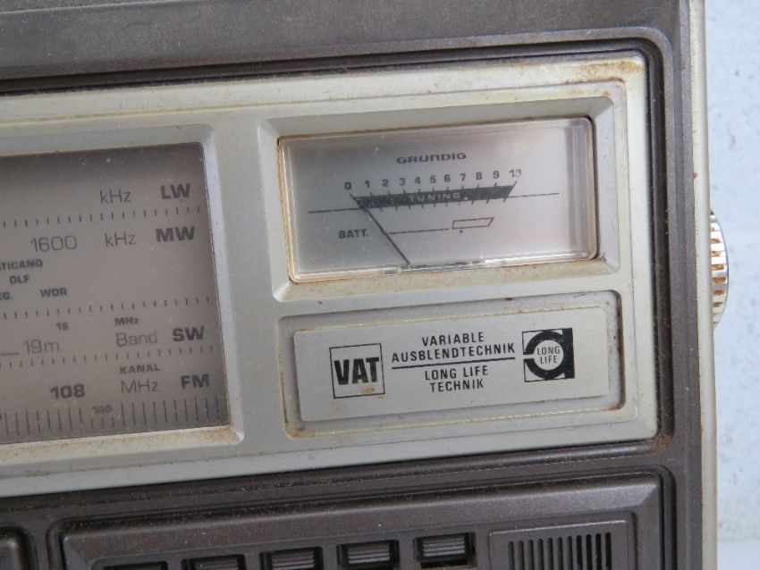 A vintage Grundig radio together with a Bush radio and two Sony radios, untested.