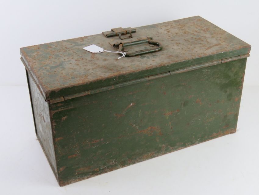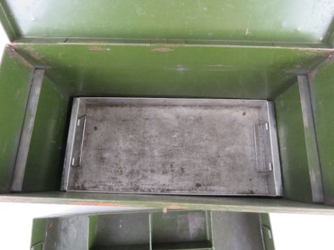 A green painted GPO engineer's toolbox in unrestored condition, marked GPO to lid, 47cm wide.
