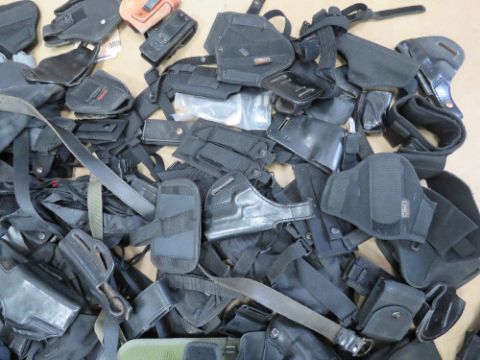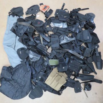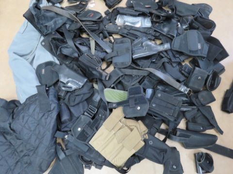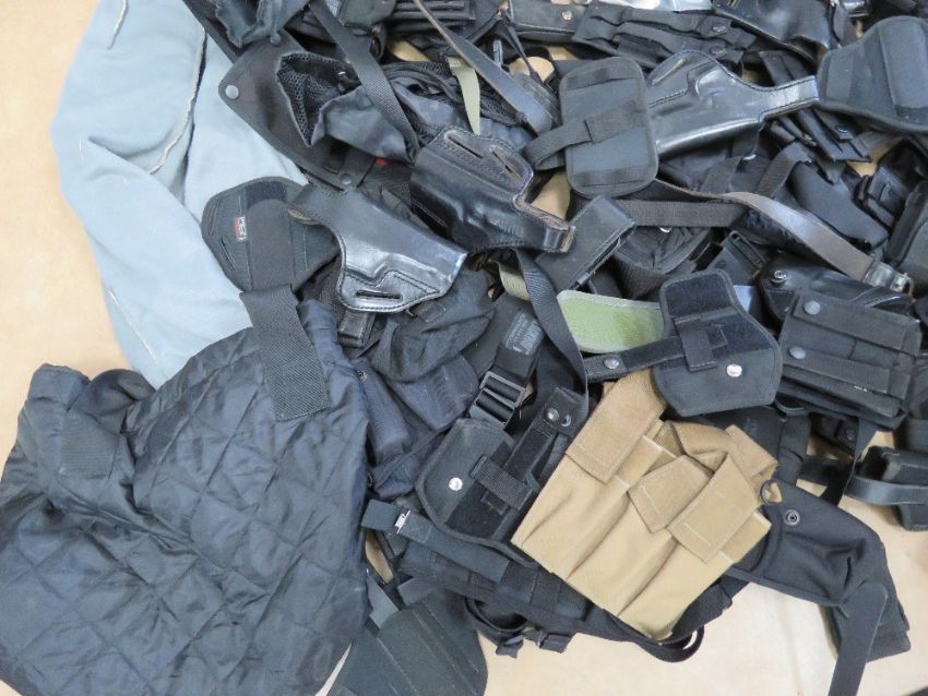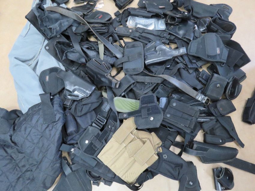 A quantity of assorted tactical equipment including holsters for 92F, Galco, Unkle mikes, G17-22, P226 etc, magazine pouches, utility pouches, tactical belts and straps, a Galco Tactical bum bag, etc.