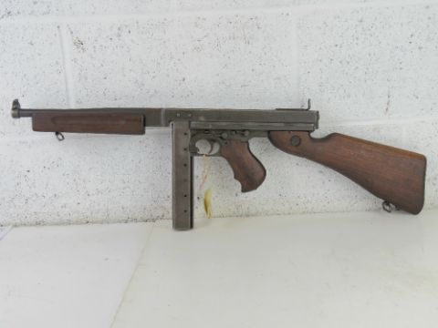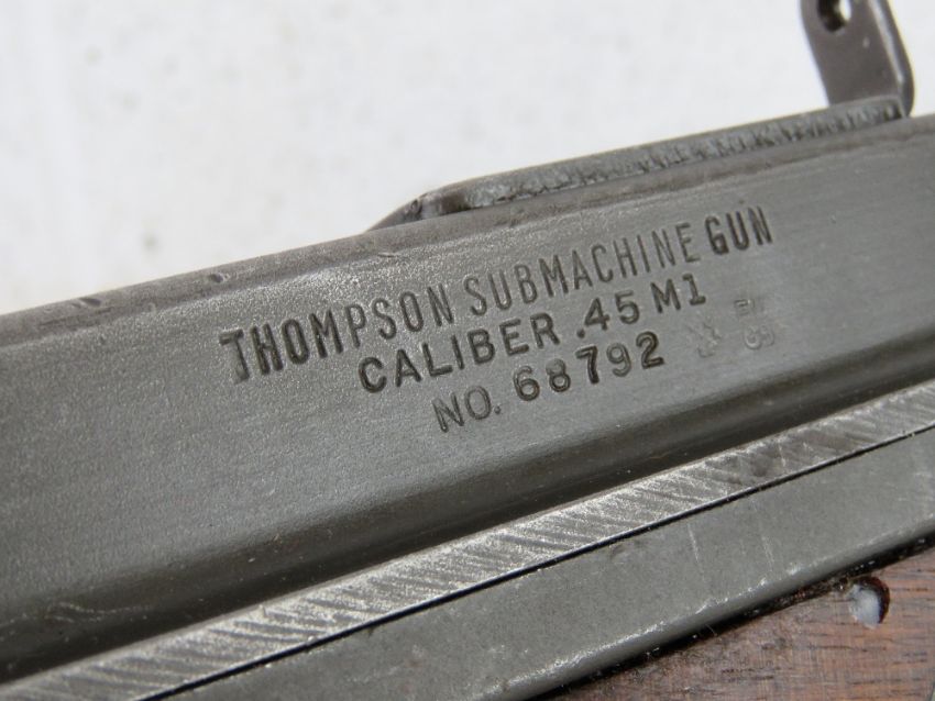 A deactivated Thompson M1A1 SMG with late war battle sight. Latest EU Spec, with moving rear bolt (under spring pressure), moving trigger, and selector. With certificate.