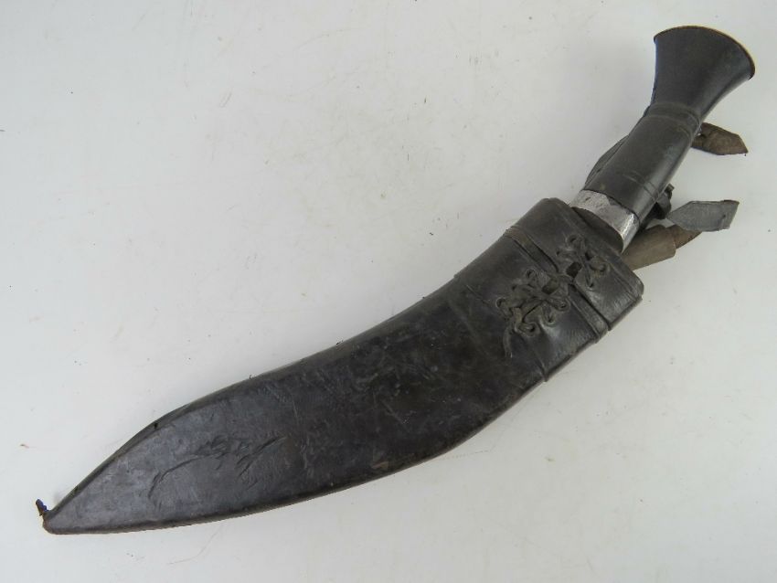 A Gurkha Kukri knife with scabbard and Karda blade.