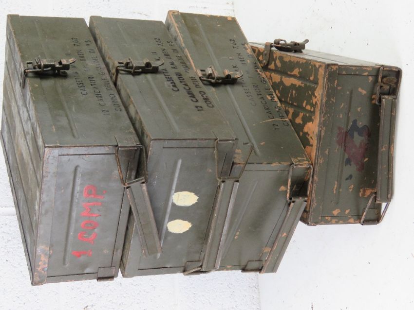 Four Bren magazine boxes, each to hold 12 x magazines, having original stencilling upon.