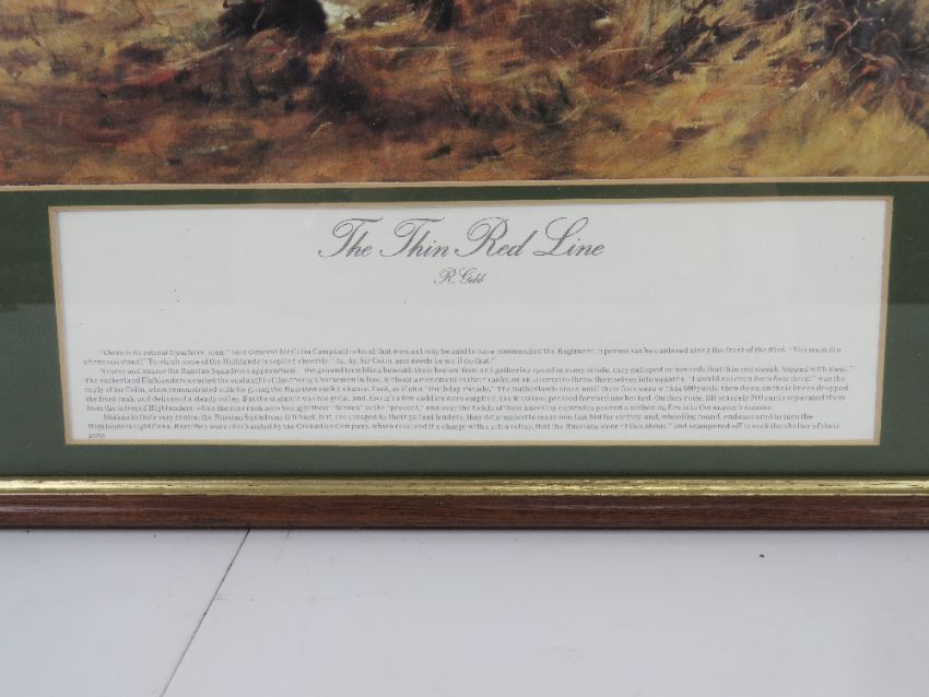 The Thin Red Line, a framed print from an original by R Gibb, framed and mounted, overall size 69 x 44.5cm.