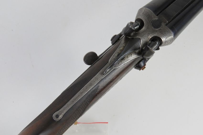 A deactivated German J.P. Sauer and Sohn Double Barrel 20 Gauge Hammer Shotgun in very good deactivated condition, with engraved action and 26 inch barrels. Latest EU spec, so moving triggers, hammer, and break open action, but non firing action.
