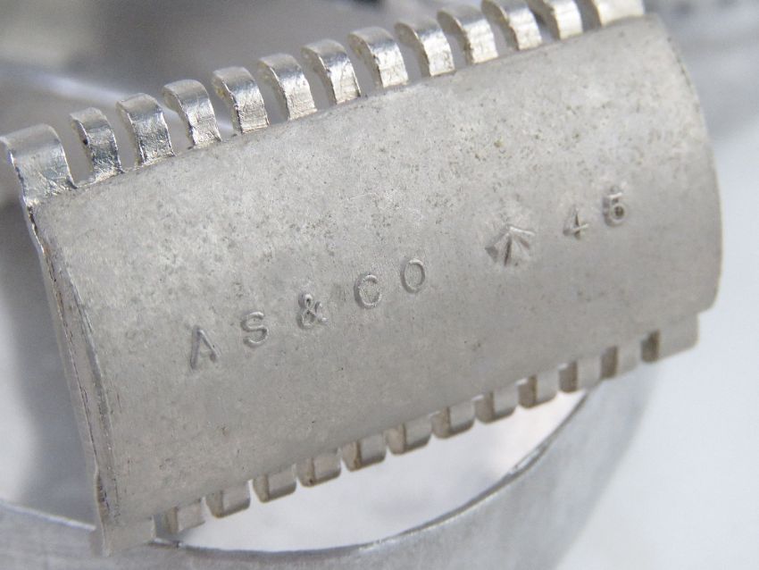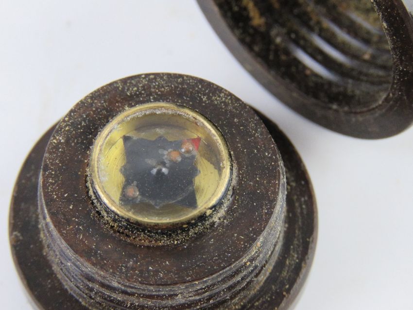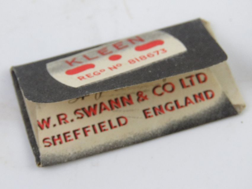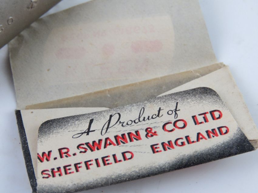 A WWII Red Cross POW Parcel British Forces shaving compass kit. Contains razor, blade, shaving brush having compass within, dated 1945 throughout, within original case.