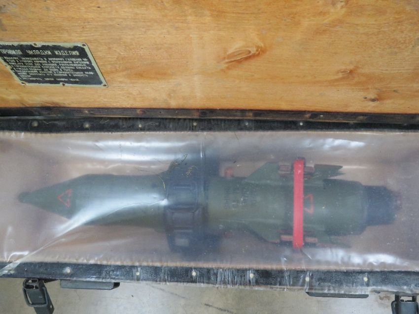 An inert Soviet 9M14 Malyutka missile in transit case.