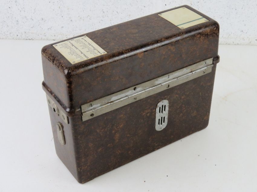 A WWII German field telephone, dated 1944 with waffenamt stamp, having wind up handle.