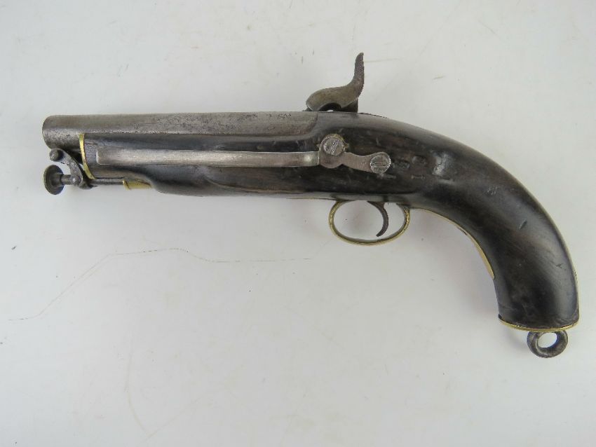 An antique British Military .58 Calibre percussion pistol with 1840 dated Tower lock and British military stamps.