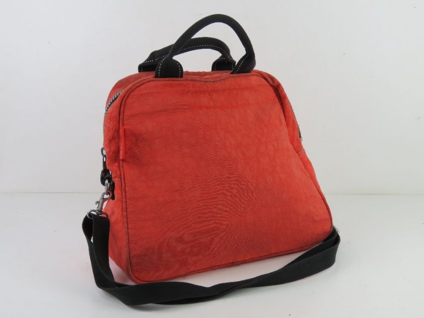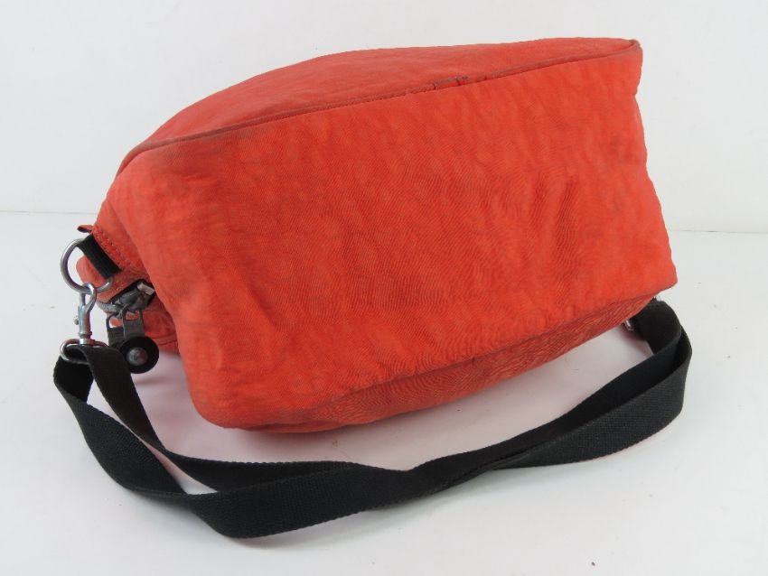 An orange canvas bag by Kipling with key chain upon approx 31cm wide.