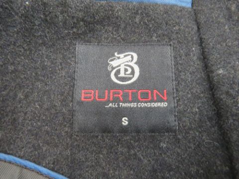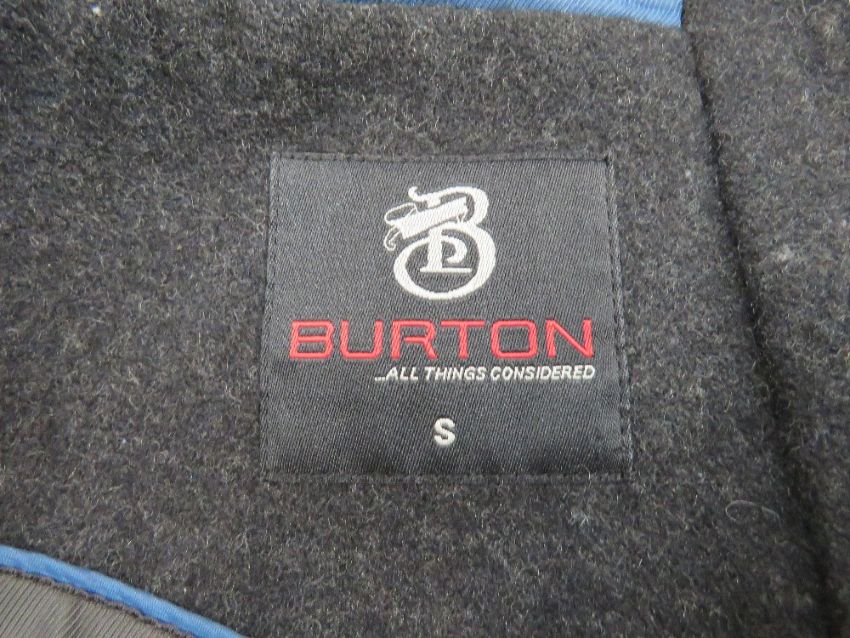 A men's 62% wool coat by Burton, size small, to fit 35-38" chest. Approx measurements; 35.5" length to back, 16.5" underarm.