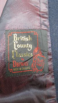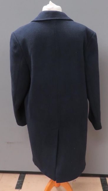 An 80% wool navy blue coat by British Country Classics, approx measurements; 44" chest, 40.5" length to back, 18" underarm sleeve.