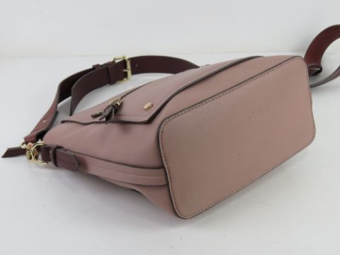 A blush pink and burgundy Jasper Conran handbag approx 29cm wide.