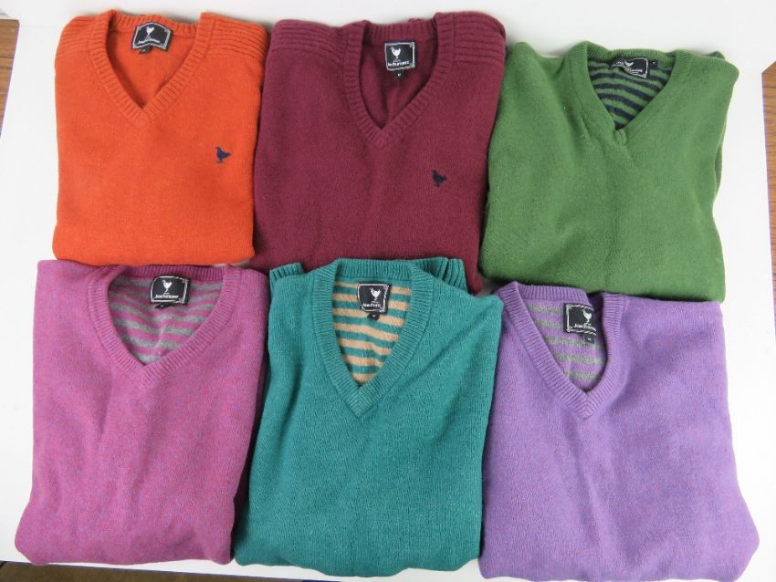 Six men's 80% lambs wool jumpers by John Partridge size M.