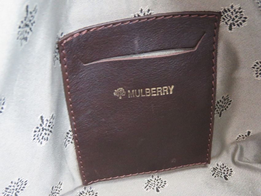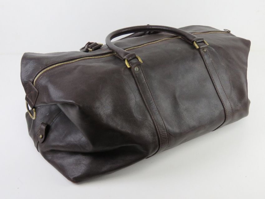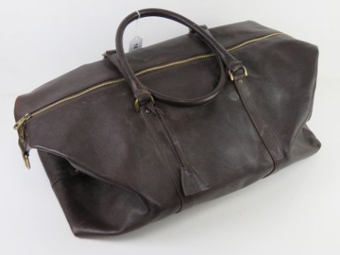 A brown leather weekend bag by Mulberry having canvas shoulder strap, some signs of wear and measuring approx 56 x 28 x 33cm.