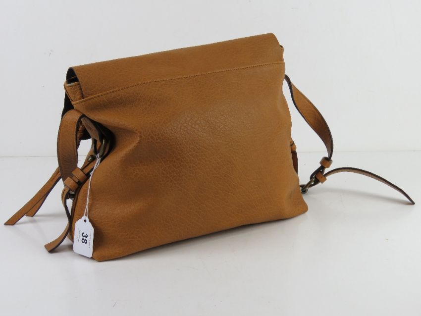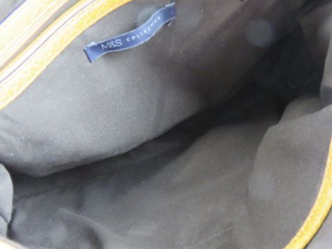 A mustard coloured cross body bag by M&S, slight wear noted to corners, approx 33cm wide.