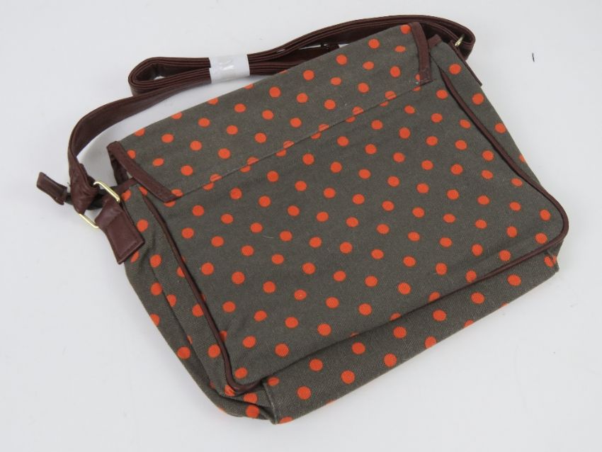 A orange polka dot fabric handbag 'as new' 27 x 24cm.