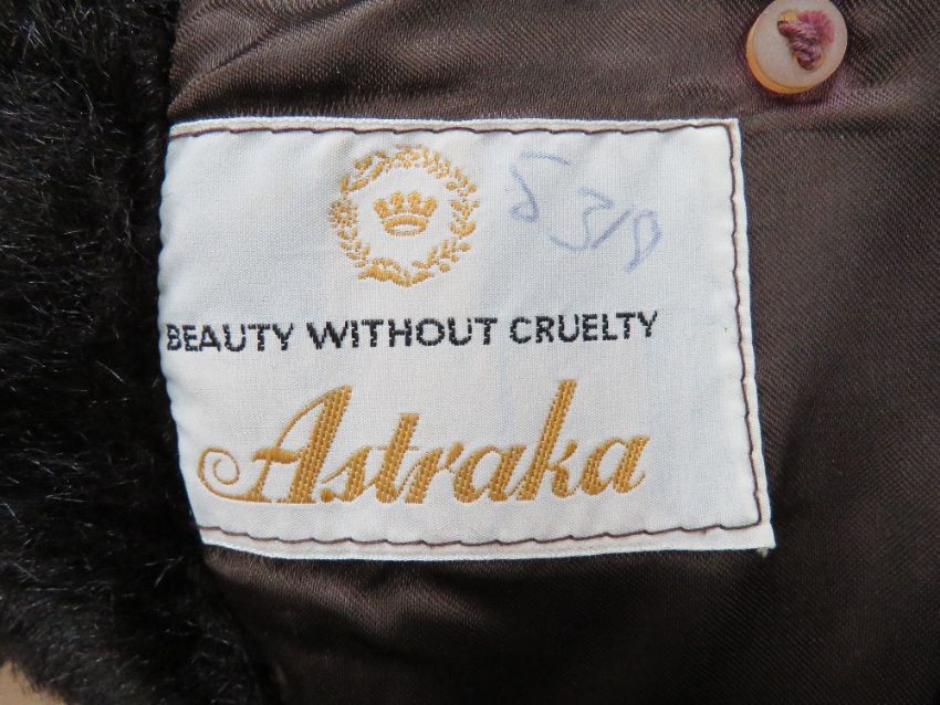 A vintage faux fur coat, approx measurements; 42" chest, 42.5" length to back, 16" underarm sleeve.