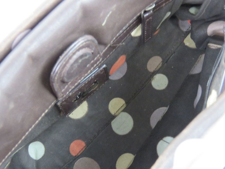 A brown polka dot Radley handbag complete with original dust bag, approx 30cm wide.