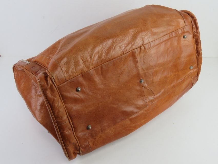 A vintage tan leather weekend bag approx 56cm in length.