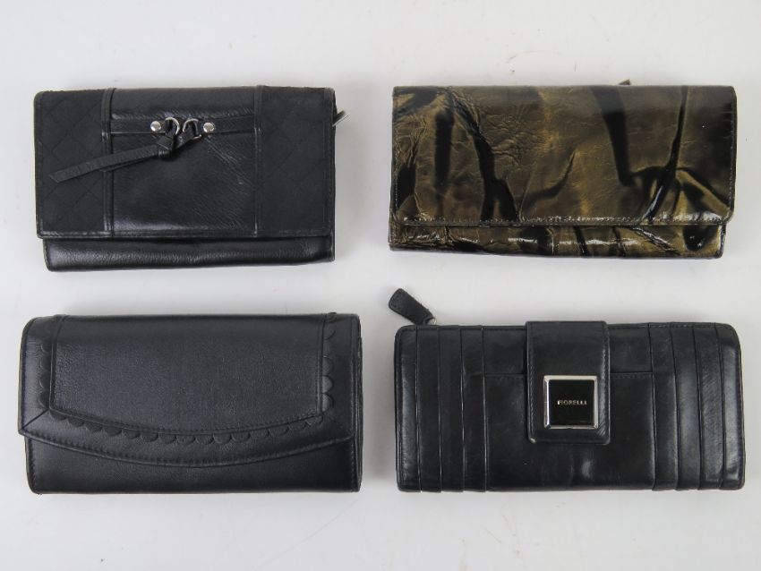 Three leather wallets/purses being Fiorelli, M&S, Graffiti and Bramble & Brown. Each approx 19cm wide. Plus one other. Four items in total.