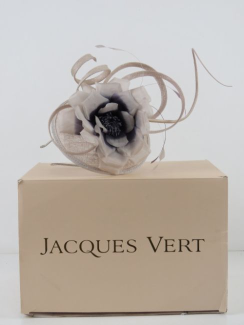 An 'as new' fascinator in blush and purple, within original box with price tag of £79 by Jacques Vert.