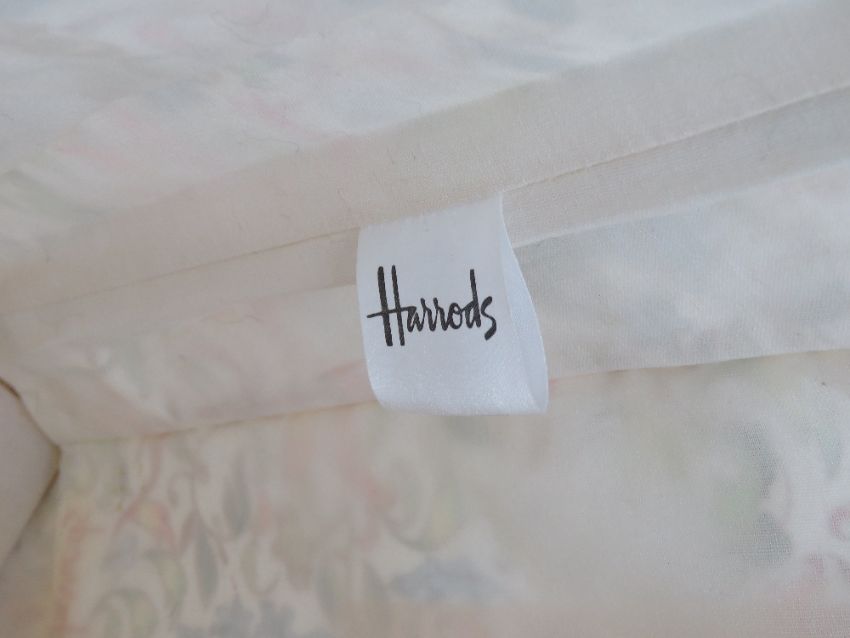 Harrods; a cotton coated with PVC shopping tote approx 28cm wide.