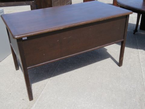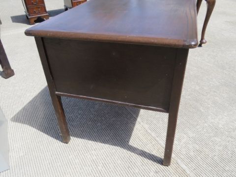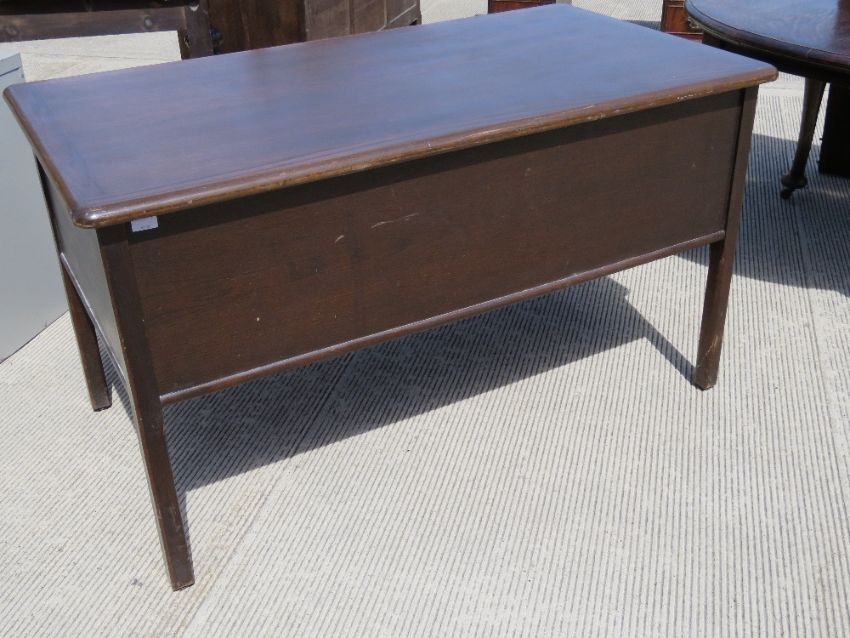 A mid 20th century oak kneehole desk by Abbess having twin drawers to each side and raised over chamfered legs, 136 x 74 x 76cm.