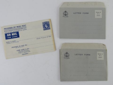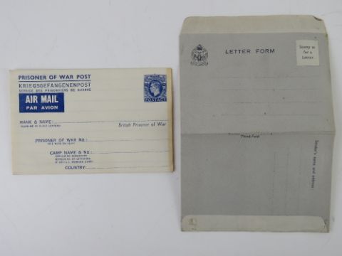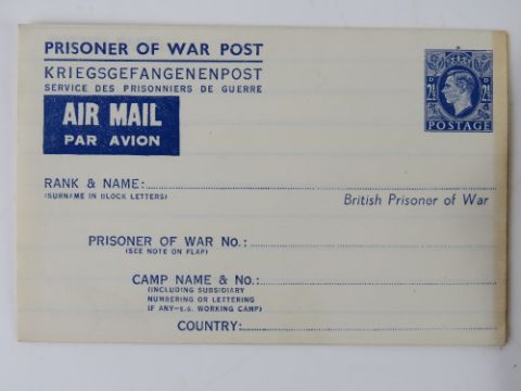 An original Prisoner of War Post Airmail Envelope letter with integral blue 2 1/2d stamp, together with an original Navy, Army and Air Force Institution (NAAFI) envelope letter. Two items.