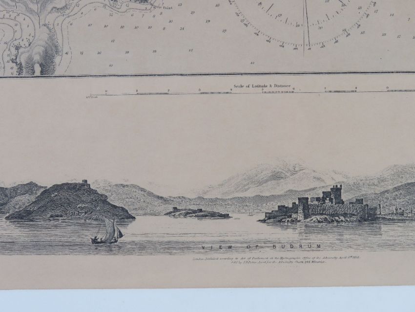 Map; Budrum Asia minor the ancient Halicarnassus 'engraved by J & C Walker' dated 1851, framed and mounted overall size 62.5 x 78.5cm.
