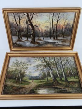A pair of contemporary oil paintings of forest scenes, each signed S William, each sight size 59 x 35.5cm, overall size 67 x 43.5cm.