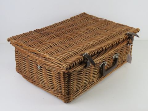 A wicker hamper measuring 52 x 37 x 19cm.