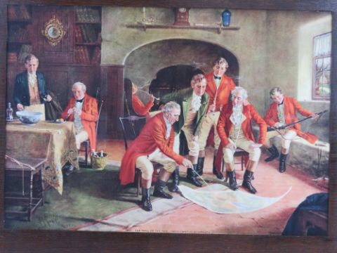Print; 'The Trail of the Fox' from a painting by Mohlte, in oak frame, sight size 50 x 34cm, overall size 75 x 60.5cm.