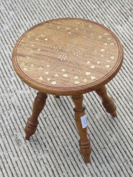 A single inlaid Indo Asian side table raised over four turned legs profusely decorated with brass inlay, 30 x 32cm.