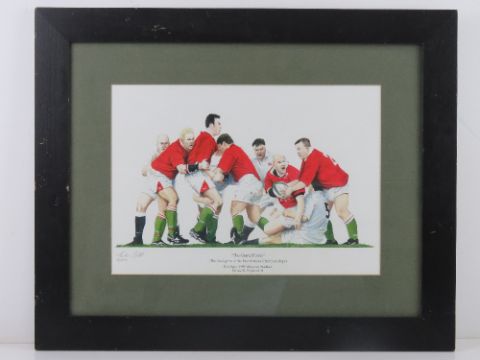 Signed limited edition print 'The Grand Finale' The final game of the Five Nations Championships 11th April 1999, Wembley Stadium Wales 32 England 31 by Andrew Coslett No 18/400, signed in pencil lower left, with certificate verso, sight size 34 x 24cm, framed and mounted.
