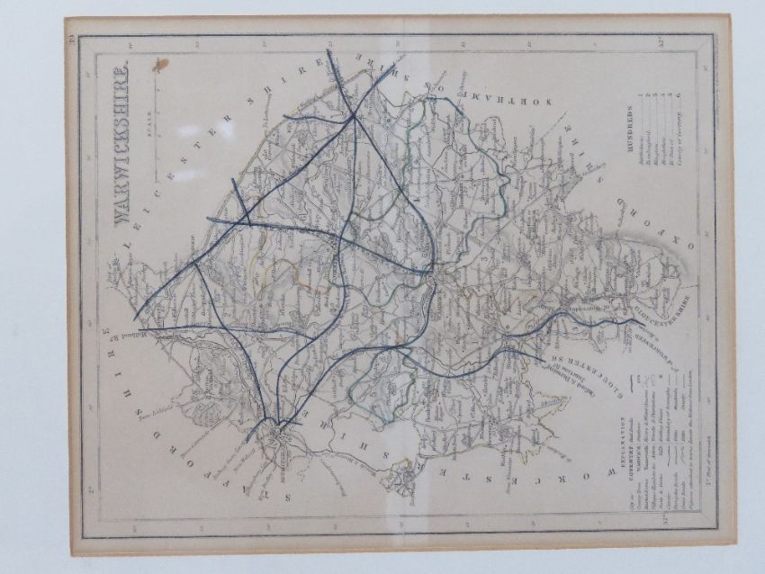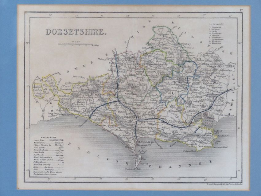 Maps; four maps 'drawn and engraved by J Archer Pentonville London' being Cumberland, WiItshire, Warwickshire and Dorsetshire, each framed and mounted, largest 40 x 34cm overall.