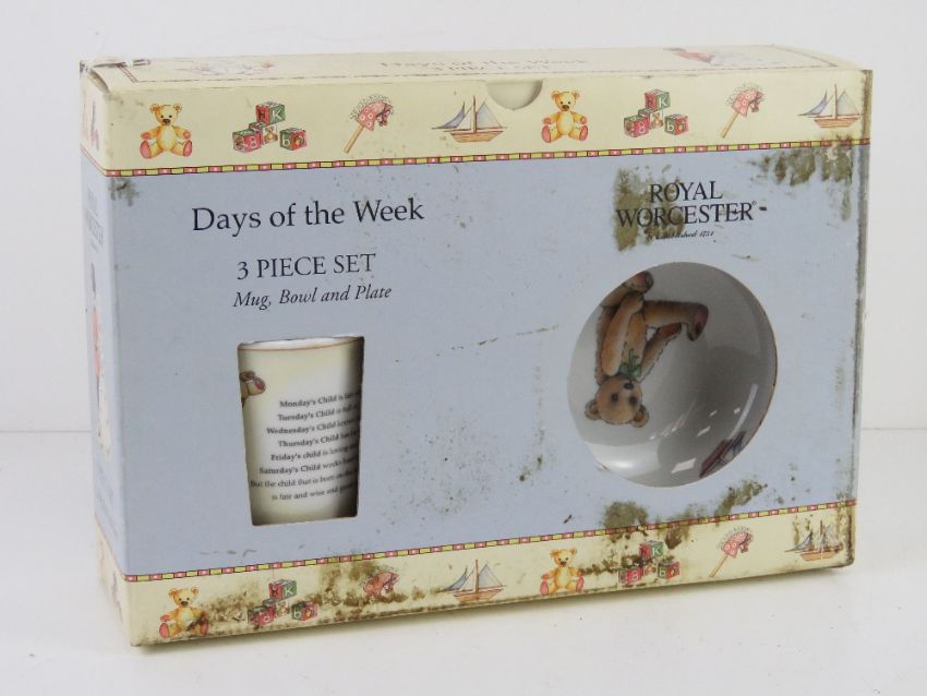 A Royal Worcester christening set, box slightly a/f.