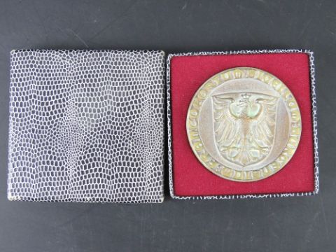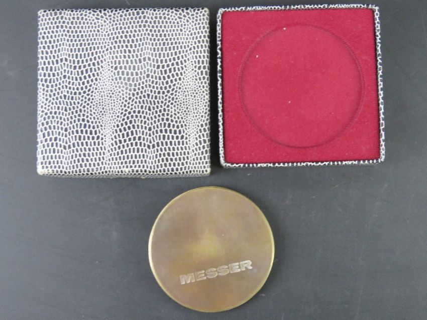 A bronze medallion 'Sigelum Burgensium Francofortum', in original fitted box, 7.5cm dia, medallion weighing 224.9g, marked to back Messer.